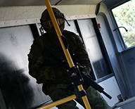 Na ploše 3000 m² Tě čeká městský styl se spoustou úkrytů – nemocnice, věznice, kostel, autobus i vozidla.